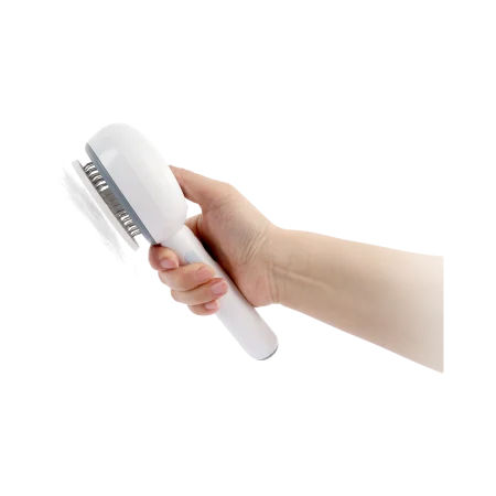 Peria cu Spray este o perie inovatoare pentru animale de companie, echipata cu functie de spray care reduce eficient electricitatea statica si parul care zboara in timpul perierii. Recipientul incorporat permite adaugarea de apa, deodorant sau balsam pentru par, iar butonul de eliberare face curatarea parului de pe perie rapida si usoara.