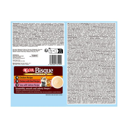 Ciao Churu Bisque Variety cu Pui, Pui si Vita, Ton si Somon pentru Pisici - 10 Buc